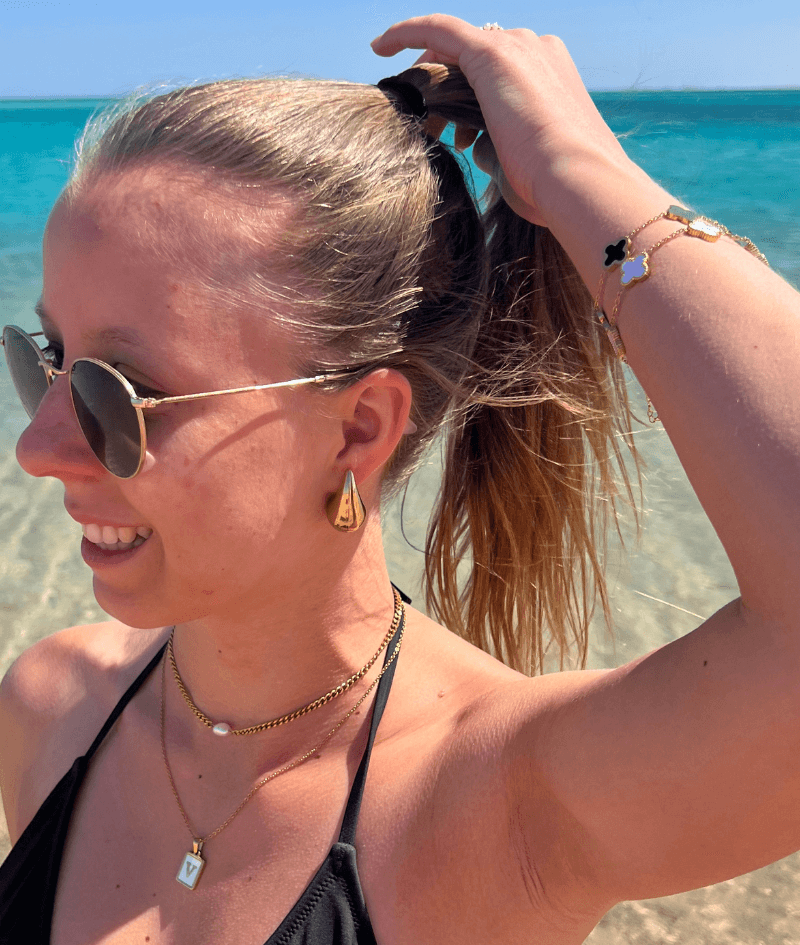 Unser Schmuck besteht aus hochwertigem 316L Edelstahl, der besonders robust, langlebig und hautfreundlich ist. Veredelt wird er mit einer 18 Karat Vergoldung ✨.